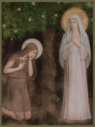 Eve’s choice to eat the forbidden fruit symbolized humanity’s first act of disobedience to God, leading to the fall and introducing sin into the world. This act resulted in mankind’s alienation from God, ushering in both physical death and spiritual separation from the divine. In stark contrast, Mary’s offering through her acceptance of God’s will brought forth the Incarnation of Christ and served as a means of reconciliation between God and humanity. Unlike Eve, whose actions led to despair and separation, Mary’s obedience heralded a new beginning, offering hope for eternal life and restoring the relationship between God and His creation. This theological understanding underscores the significance of Mary in salvation history, presenting her not just as the mother of Jesus but as a pivotal figure in reversing the effects of original sin.