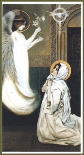 Virgin Mary received faith and joy when the angel Gabriel announced to her the glad tidings that
